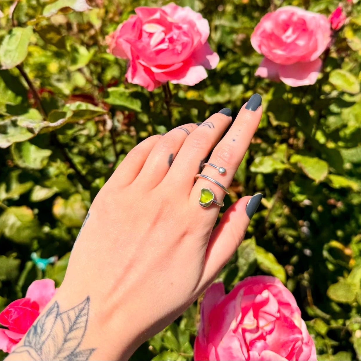 This handcrafted sterling silver ring features a natural peridot gemstone set in a smooth spiral design. One end holds the peridot, and the other finishes with a small silver dome, creating a simple yet unique look. The open shape wraps gently around your finger making it comfortable to wear. Ring size US 7 but the design is slightly adjustable.